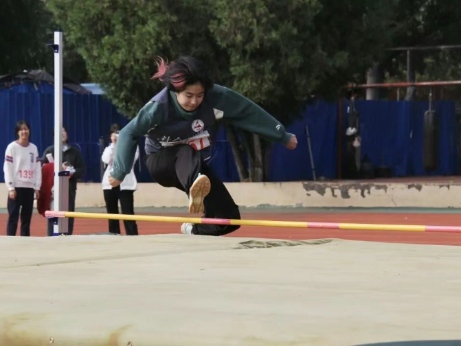 跳高:助跑积聚力量,腾空拥抱苍穹。面对横杆,社院健儿助跑、起跳、腾空、过杆,身姿轻盈如燕。他们不断挑战新的高度,每一次优美的弧线,都是对自我极限的突破与超越。