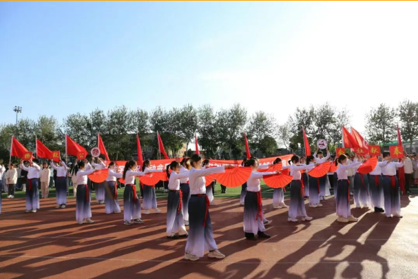 红扇扬起,激情燃烧;衣袂飘飘,刚柔并济。乐曲响起,队形变换。朱红折扇开合间,似蝶舞纷飞,如火焰跃动,这一刻,传统与现代在舞姿中交融,文化与体育在韵律中共鸣。风华正茂的社院学子尽情绽放他们的绚丽光彩。